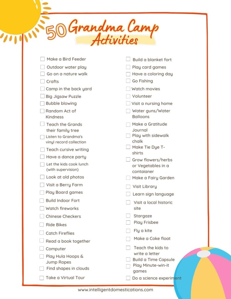 Host a successful Grandma summer camp this year using any of these 50 camp activity ideas.
