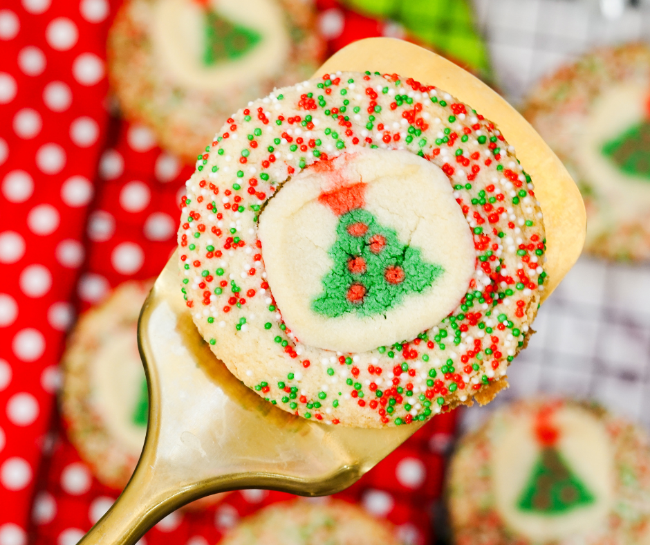 Use this clever Christmas cookie baking hack to take store bought cookies to another level. Everyone will wonder how you got that Christmas tree into the center of a sprinkle covered cookie. Shhh, it’s our secret, just like the Tiktok cookie hack is a secret.