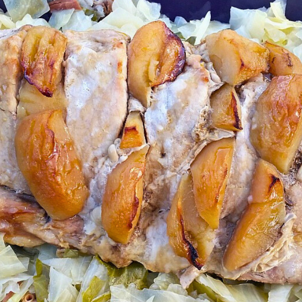 Pork, apples, and cabbage pair well for a tasty Fall dish for dinner. Use my little trick for a tender and juicy pork loin every time.