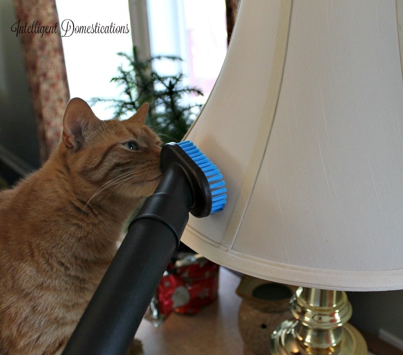 Pet dander will attach itself to lampshades. The vacuum attachment will take it right off.