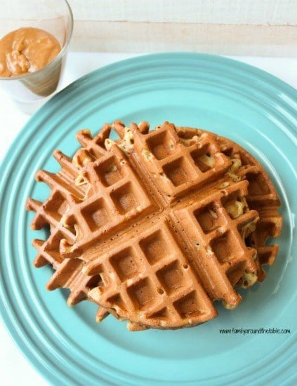 Banana Spice Waffles with Peanut Butter Syrup